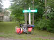I got lost three different times today, perhaps I should just call them "different roads" but still managed to get where I was heading which is New Paltz, NY. was about a 70 mile ride today, sure helps to not have so much UP. I stopped in a local bike shop and got a new chain-yeah!!- and the mechanic said "did you know this piece of bungee cord is wrapped around your front wheel? "Well, all I can say is sue felt funny when I had to peddle DOWNHILL. Was only on there for a few miles as I remembered it breaking. Stopped at the hardware store and bought bungee card and S hook and back on the road!